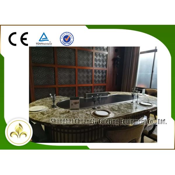 10 Seats LPG Heating Oval Shape Stainless Steel and Alloy Steel Upper or Down Exhaustion Japanese Teppanyaki Grill Table